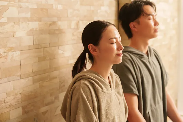 約40℃でアロマを加えた低温サウナで、気持ちよくウォーミングアップ。