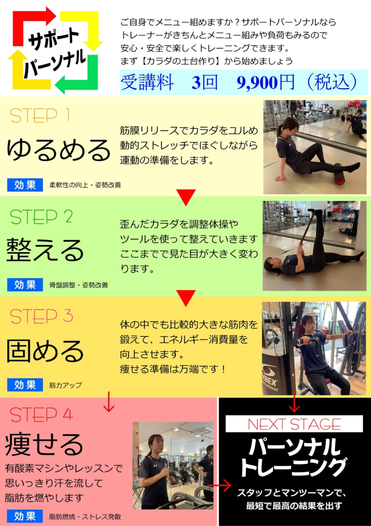 サポートパーソナルでまずは【カラダの土台作り】から始めましょう。